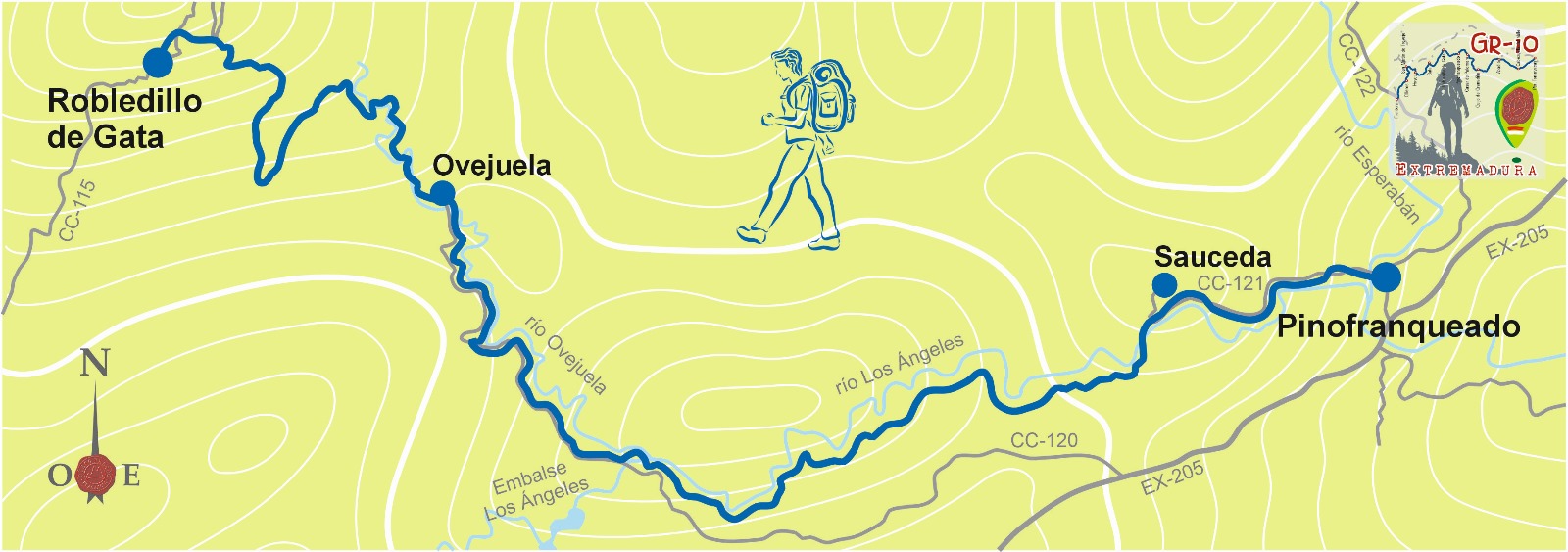 El GR 10 sale de la localidad de Robledillo de Gata junto al puente que cruza el río Árrago, pasando justo al lado de la Ermita del Humilladero, el cementerio y una fuente. Por una pista hormigonada que, entre viñas y olivos, avanza dando lugar a continuos ascensos y descensos, se llega a la Ermita de San Miguel y se desciende hasta cruzar el Arroyo de la Garganta, donde el camino se vuelve de gravilla.