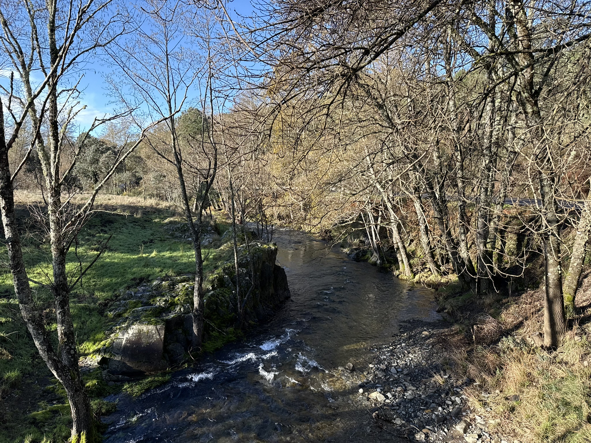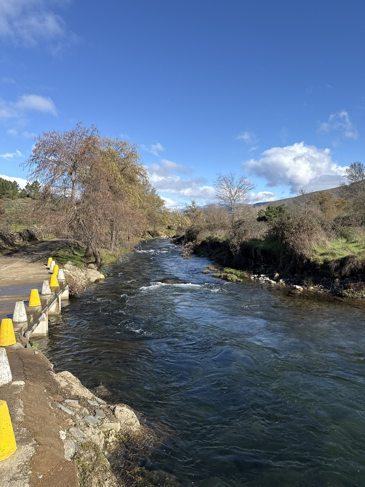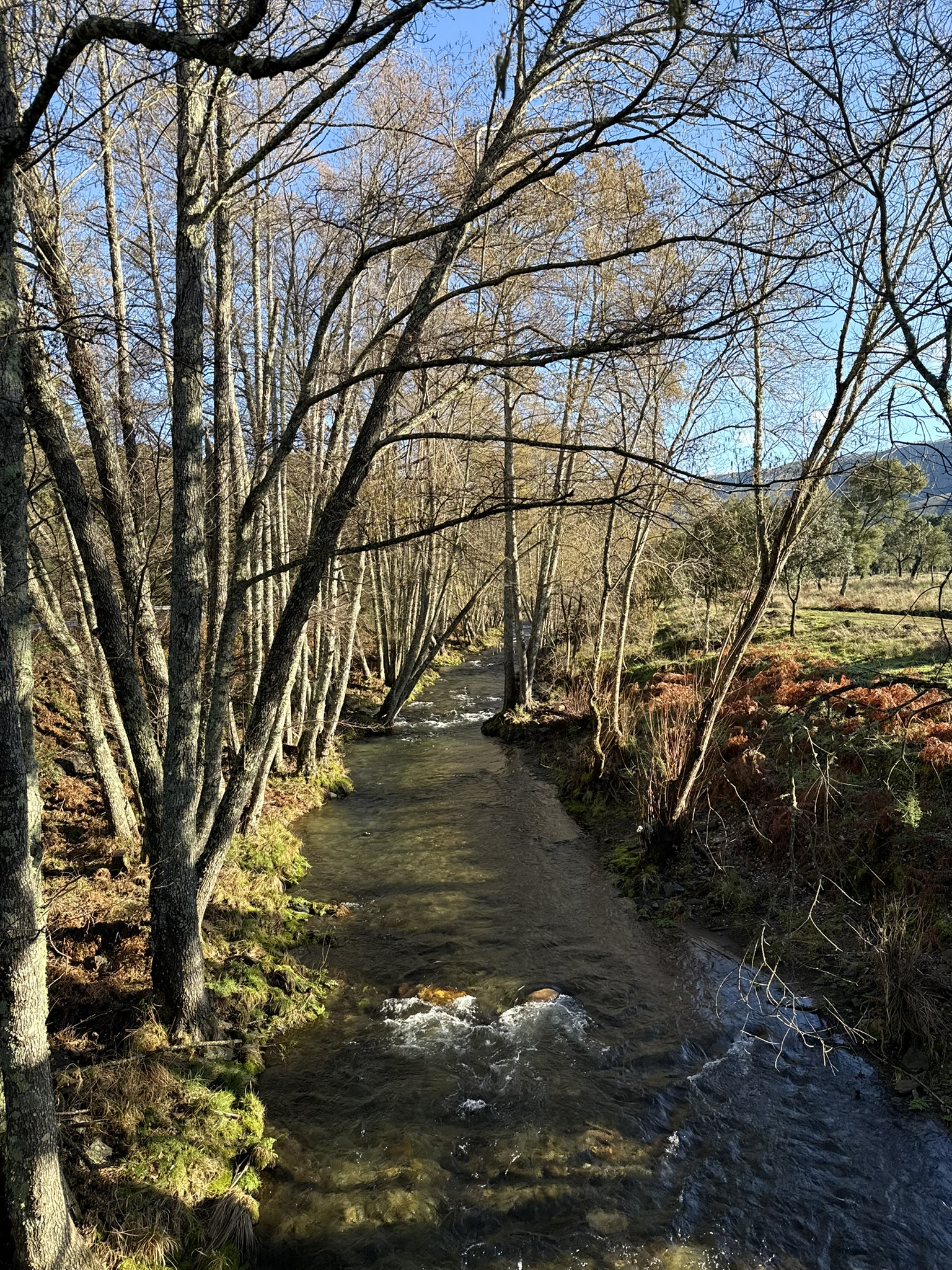 La travesía cruza varios cauces, afluentes del Árrago, como el arroyo del Puerto y el río Nobleas. Este último se supera por un puente situado junto al campamento juvenil San Francisco de Asís, con vistas a la Torre de la Almenara, al fondo, que la visualizaremos durante muchos kilómetros de la etapa. Al llegar a la CC-5.1, se sigue por ella unos metros a la derecha para abandonarla por un camino a la izquierda que cruza el río Árrago por otro puente.