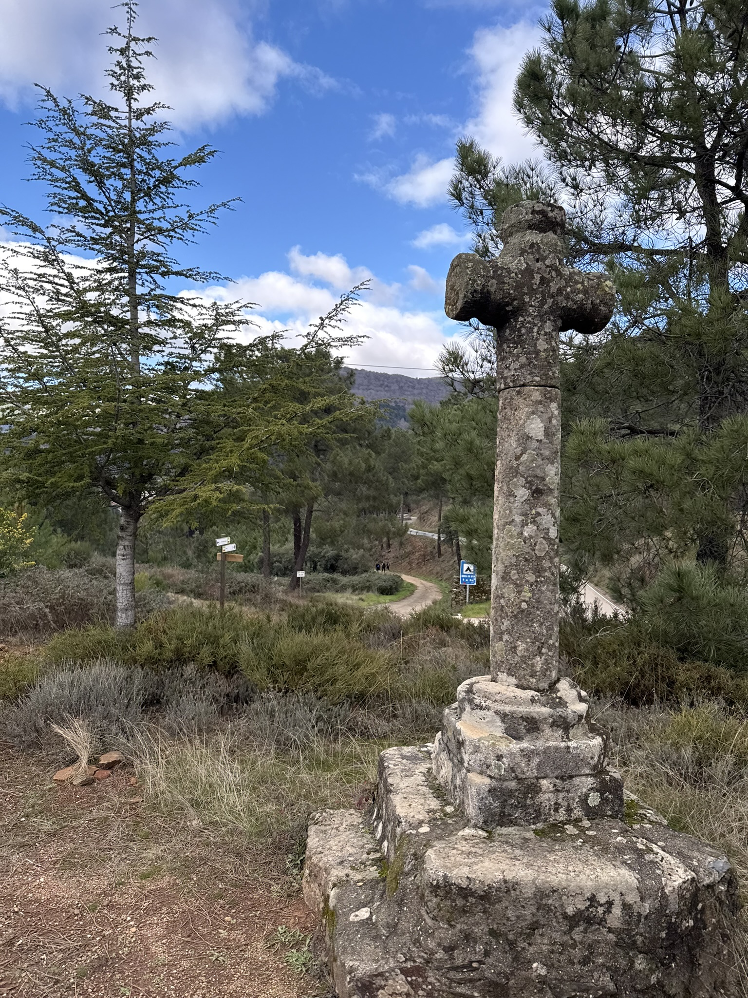 El GR 10 deja atrás Torre de Don Miguel (561 m) por la calle Camino de Gata, que sale de la Plaza Mayor y nos conduce hasta el cartel del sendero. Posteriormente, continuamos entre muros de piedra y en fuerte ascenso llegaremos al puerto de la Cruz de Piedra (720 m.), donde el camino confluye de nuevo con la carretera CC-6.3.