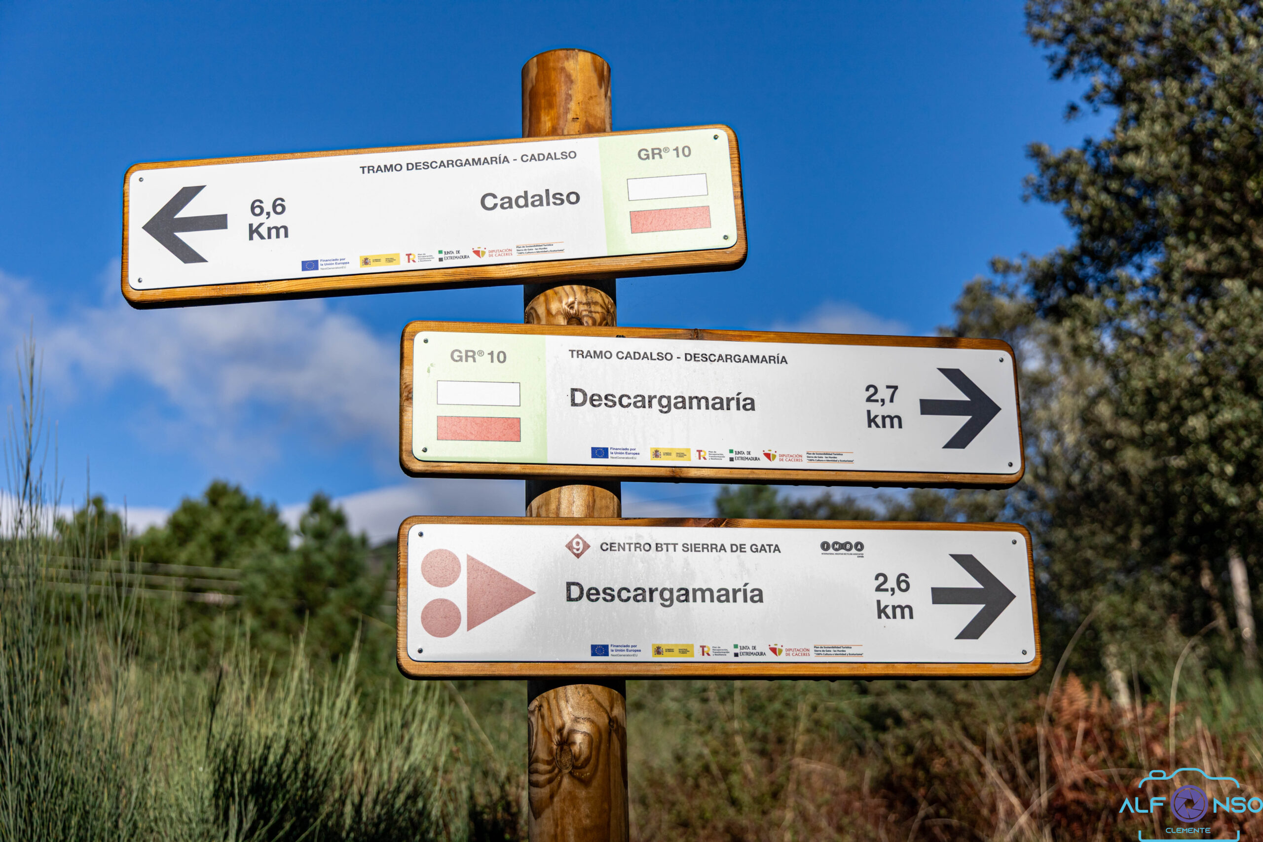A la izquierda, discurre el río Árrago y la cuerda de la sierra que separa las comarcas de Sierra de Gata y de Las Hurdes. Pasando bajo una línea de alta tensión, en el paraje conocido como El Barrero, enseguida se llega a la localidad de Descargamaría.