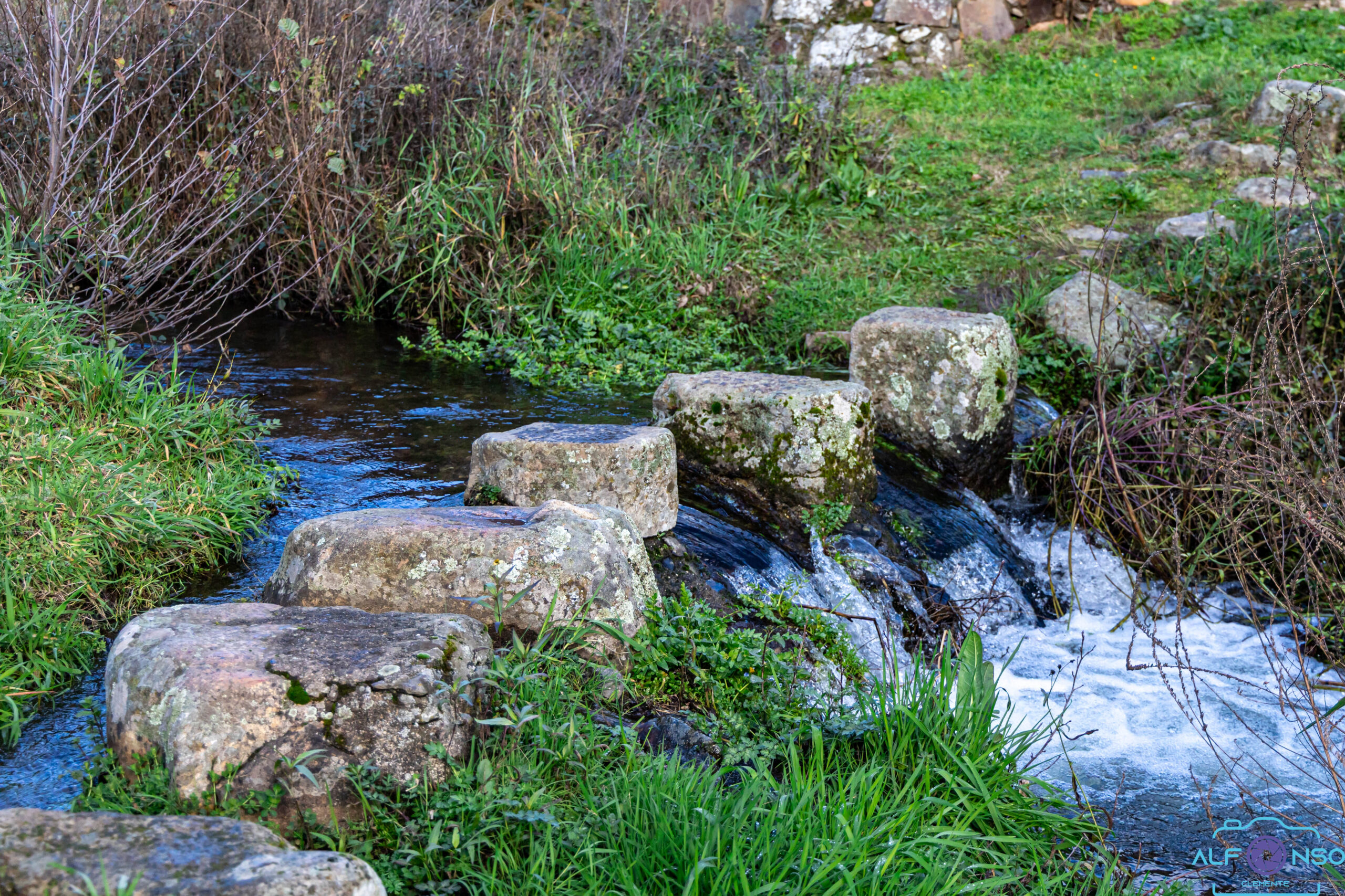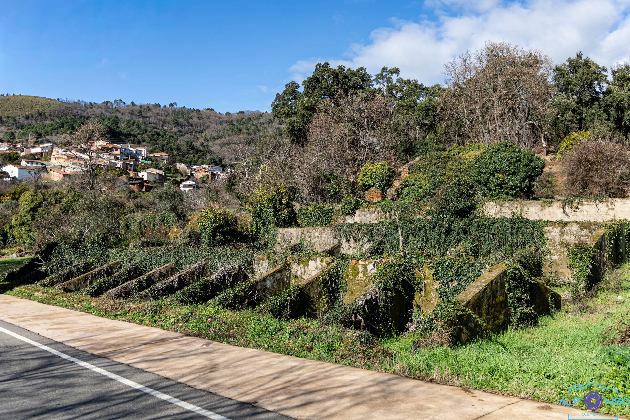 Las edificaciones derruidas de Horcajo de Alcornocal acompañan a nuestro itinerario, que se adentra en un bello camino con mucha vegetación. Así, llegamos de nuevo al curso del Árrago, que se cruza por una pasarela que a veces es arrastrada con las crecidas del río. De nuevo se llega a la carretera, que abandonamos hacia la izquierda por un carril irregular, flanqueado de muros de piedra, que nos lleva a cruzar un vado por una pasarela. Tras atravesar el barrio de las Heras, la ruta entra en la población de Cadalso.