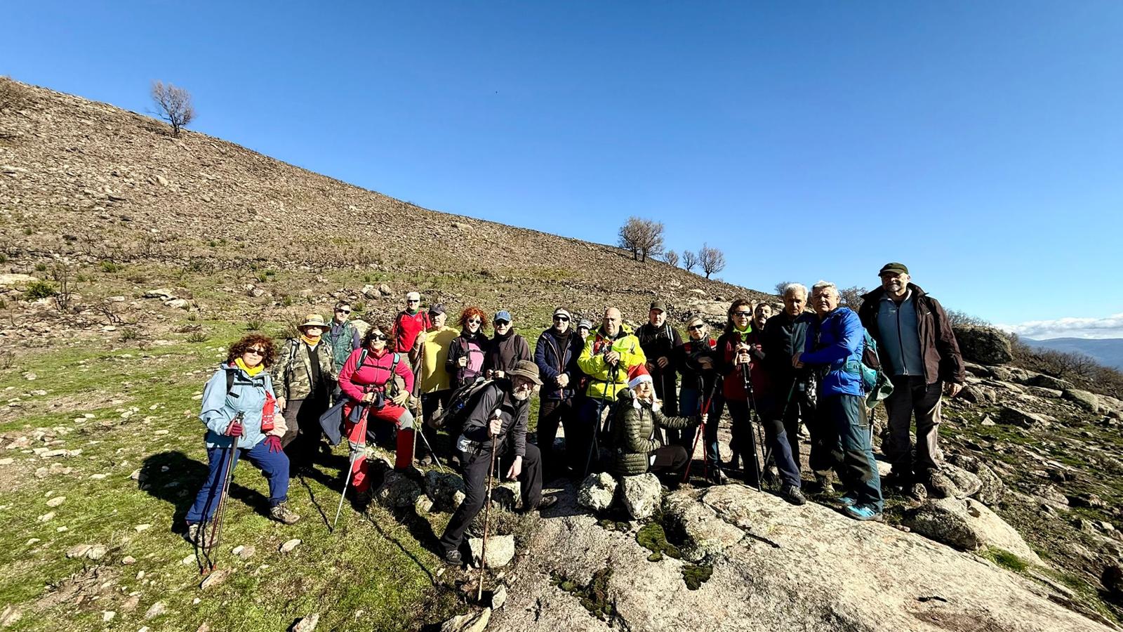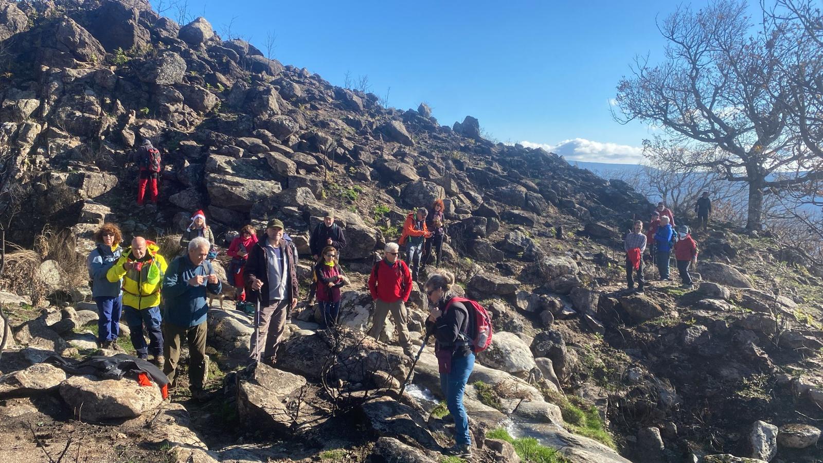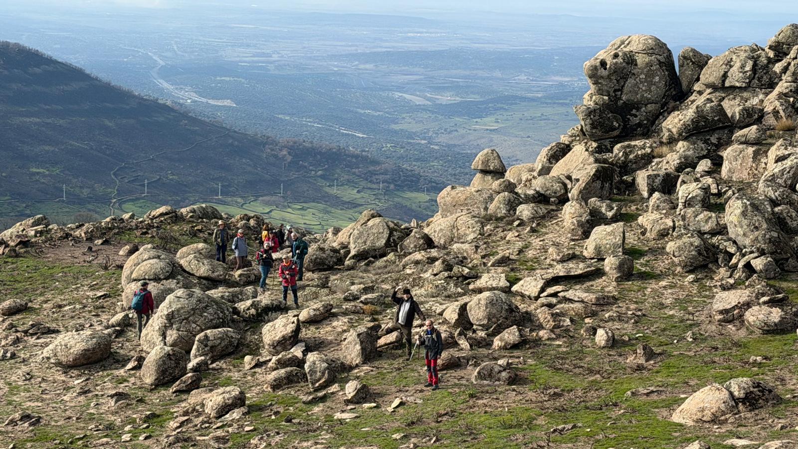 Son aproximadamente 4,5 km de ascenso, salvando un desnivel de 500 m, seguidos pero muy suaves, que hacen la subida muy cómoda y tranquila, hasta fuente Fría, aquí dejamos la pista y cogemos un camino de herradura que nos llevará a la zona conocida como el Berezal (Brezal) por la fuente del mismo nombre que está muy cerca del collado de Mingopedro a 1.300 metros. A punto de coronar, ya ves varios picos de los montes de Traslasierra, el de Cabeza del Santo y el Fraile. Aquí seguimos los hitos que nos llevarán hasta la base del Corral de las Hormigas, colocamos nuestro Belén particular, tomamos un pequeño tentempié, cantamos algún que otro villancico y ahora nos dirigimos al Pitolero.