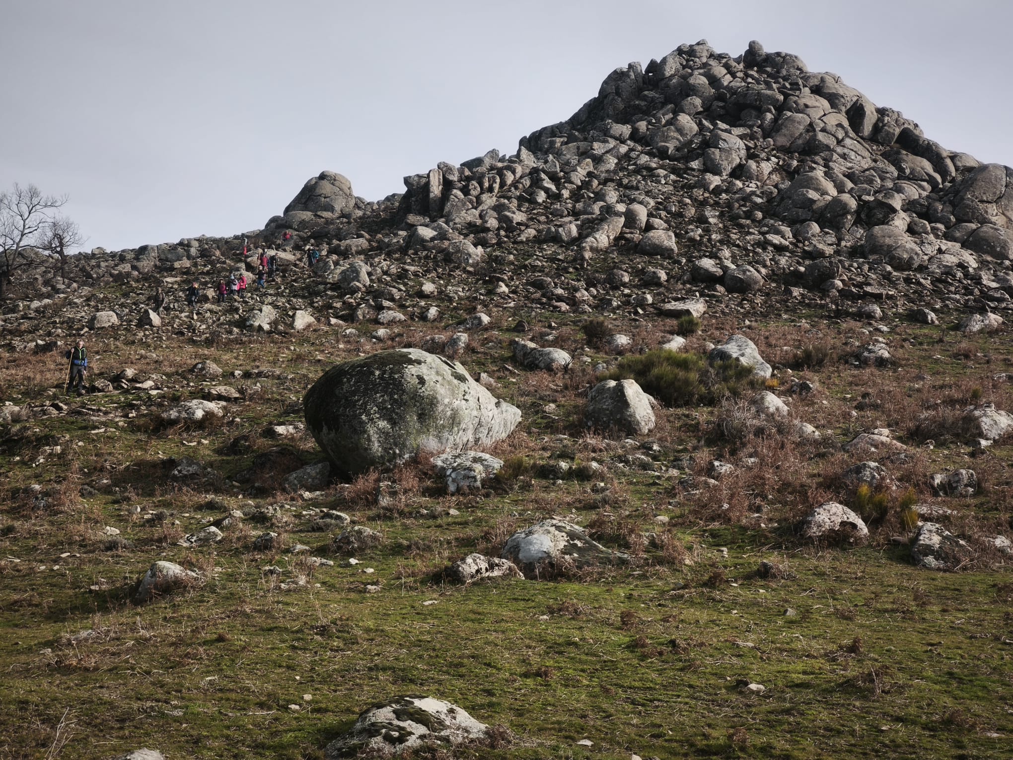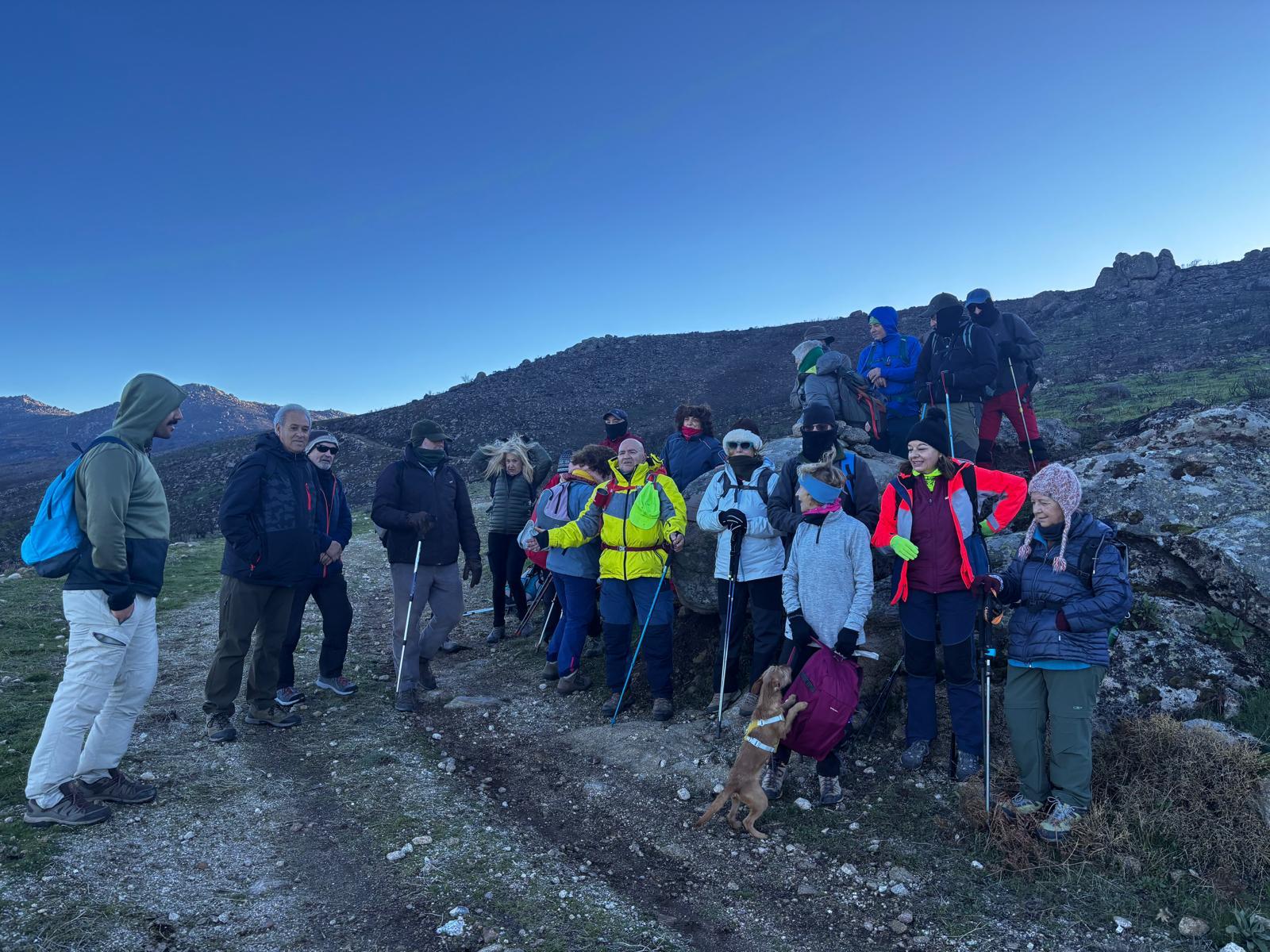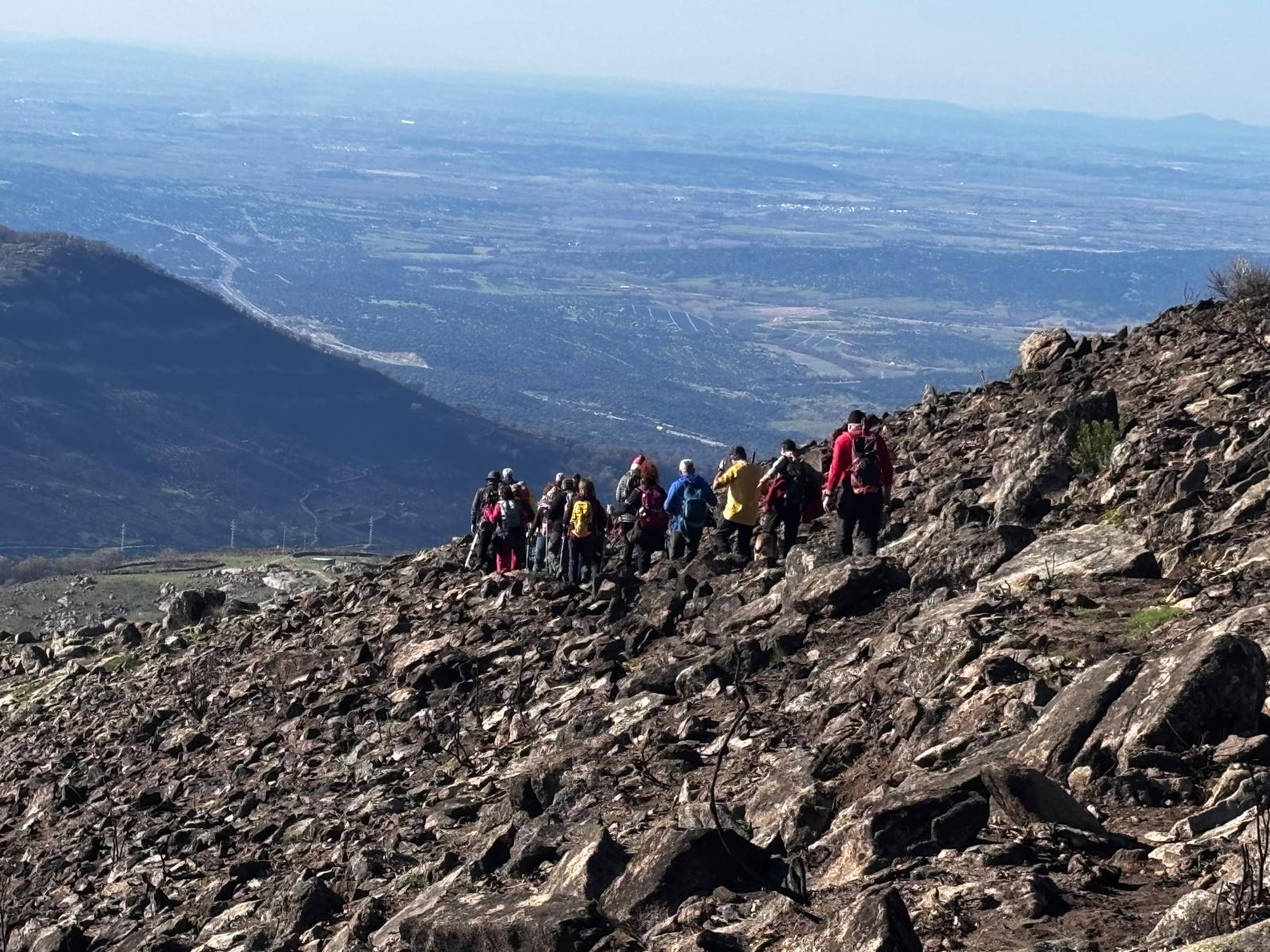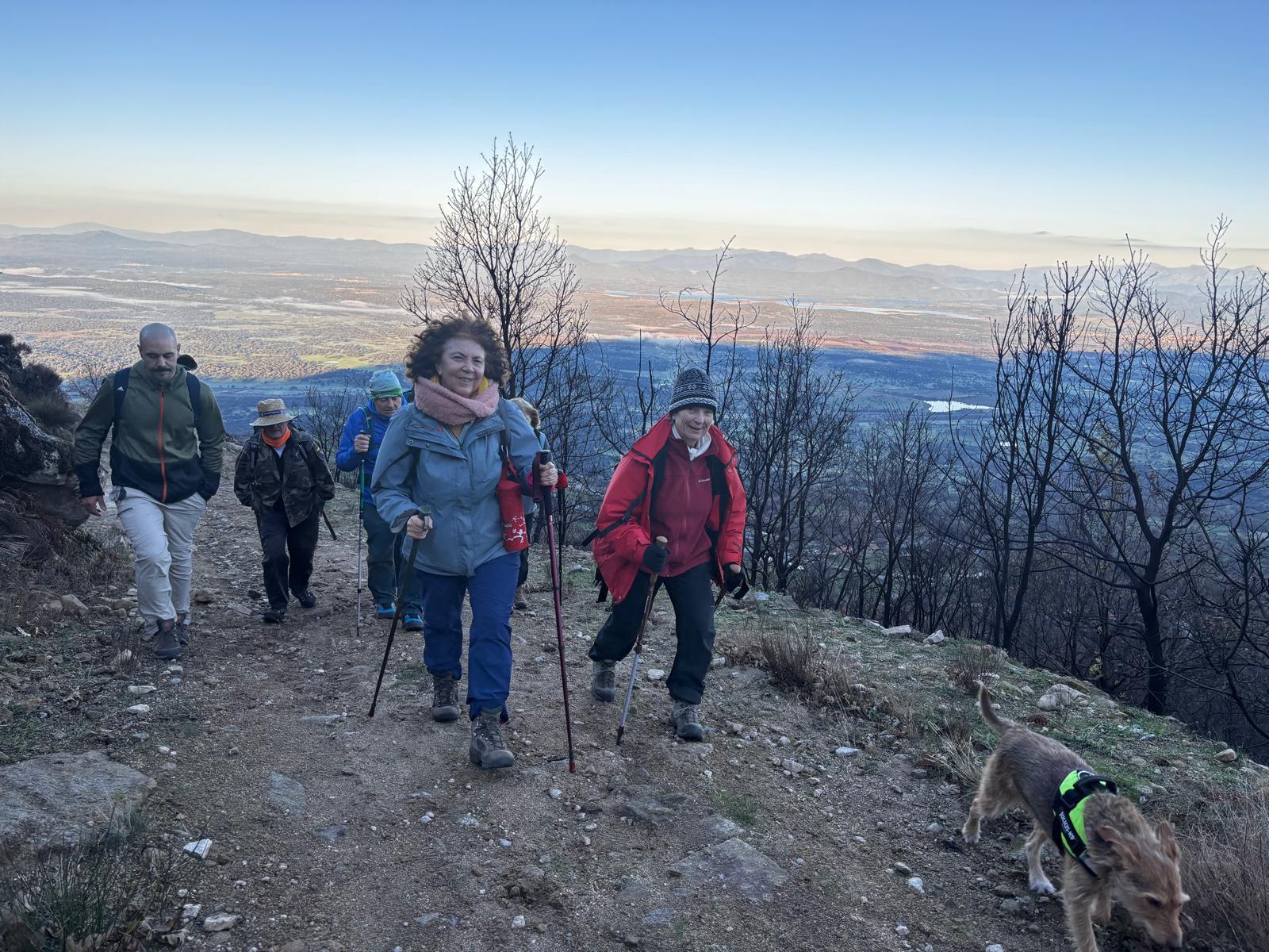 Son aproximadamente 4,5 km de ascenso, salvando un desnivel de 500 m, seguidos pero muy suaves, que hacen la subida muy cómoda y tranquila, hasta fuente Fría, aquí dejamos la pista y cogemos un camino de herradura que nos llevará a la zona conocida como el Berezal (Brezal) por la fuente del mismo nombre que está muy cerca del collado de Mingopedro a 1.300 metros. A punto de coronar, ya ves varios picos de los montes de Traslasierra, el de Cabeza del Santo y el Fraile. Aquí seguimos los hitos que nos llevarán hasta la base del Corral de las Hormigas, colocamos nuestro Belén particular, tomamos un pequeño tentempié, cantamos algún que otro villancico y ahora nos dirigimos al Pitolero.