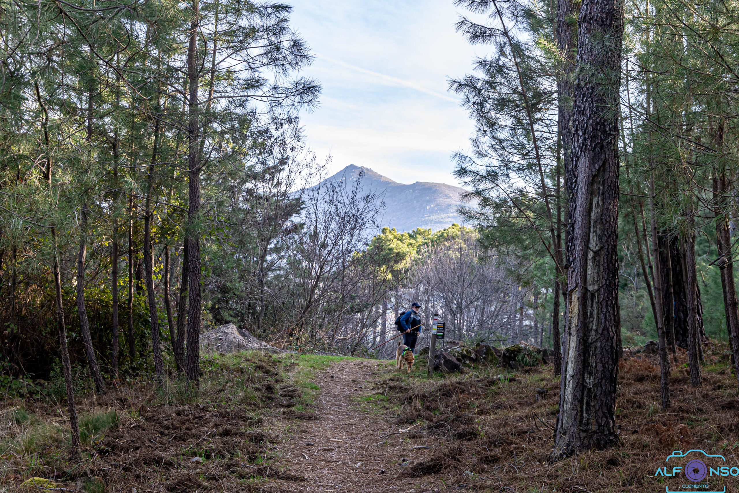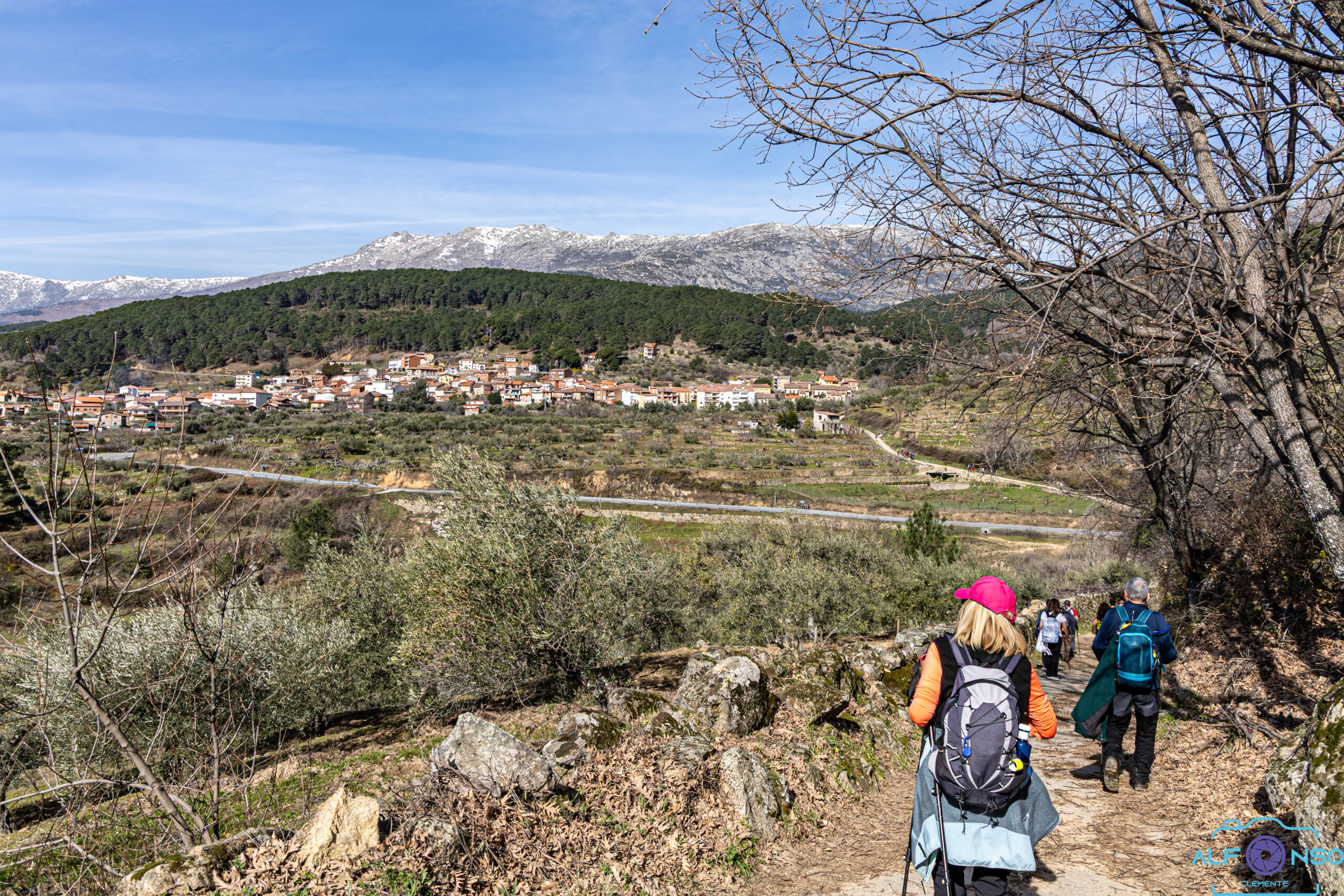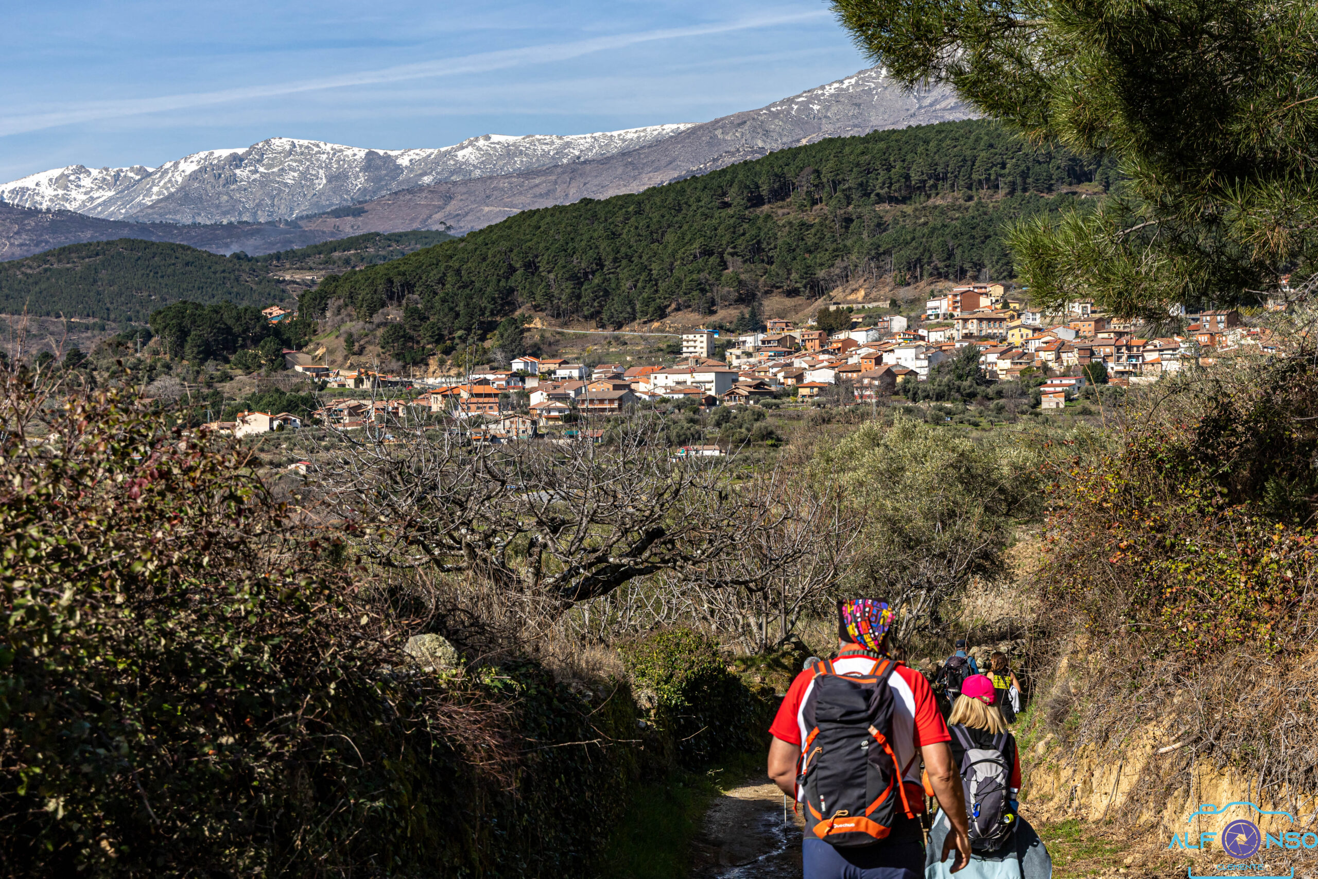 El sendero abandona la villa incorporándose durante un tramo a la Cañada Real, entre huertos, olivares y primeras masas de castaño.