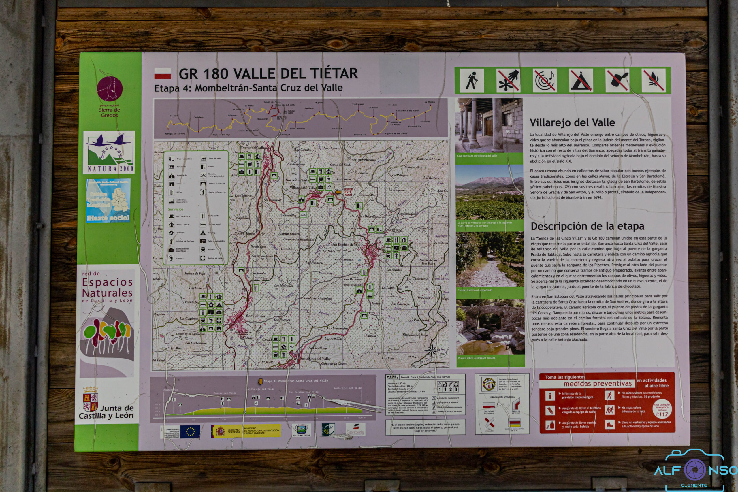 La ruta conocida como Senda de las Cinco Villas (PRC-AV 49) es, probablemente, el itinerario senderista más representativo del sector oriental de la Sierra de Gredos, en la parte más alta del Valle del Tiétar. Se trata de un recorrido circular que enlaza cinco pueblos con identidad propia —Mombeltrán, Santa Cruz del Valle, San Esteban del Valle, Villarejo del Valle y Cuevas del Valle— articulados en torno al histórico Barranco de las Cinco Villas, un enclave que Miguel de Unamuno bautizó como el «paradisíaco Valle del Barranco».