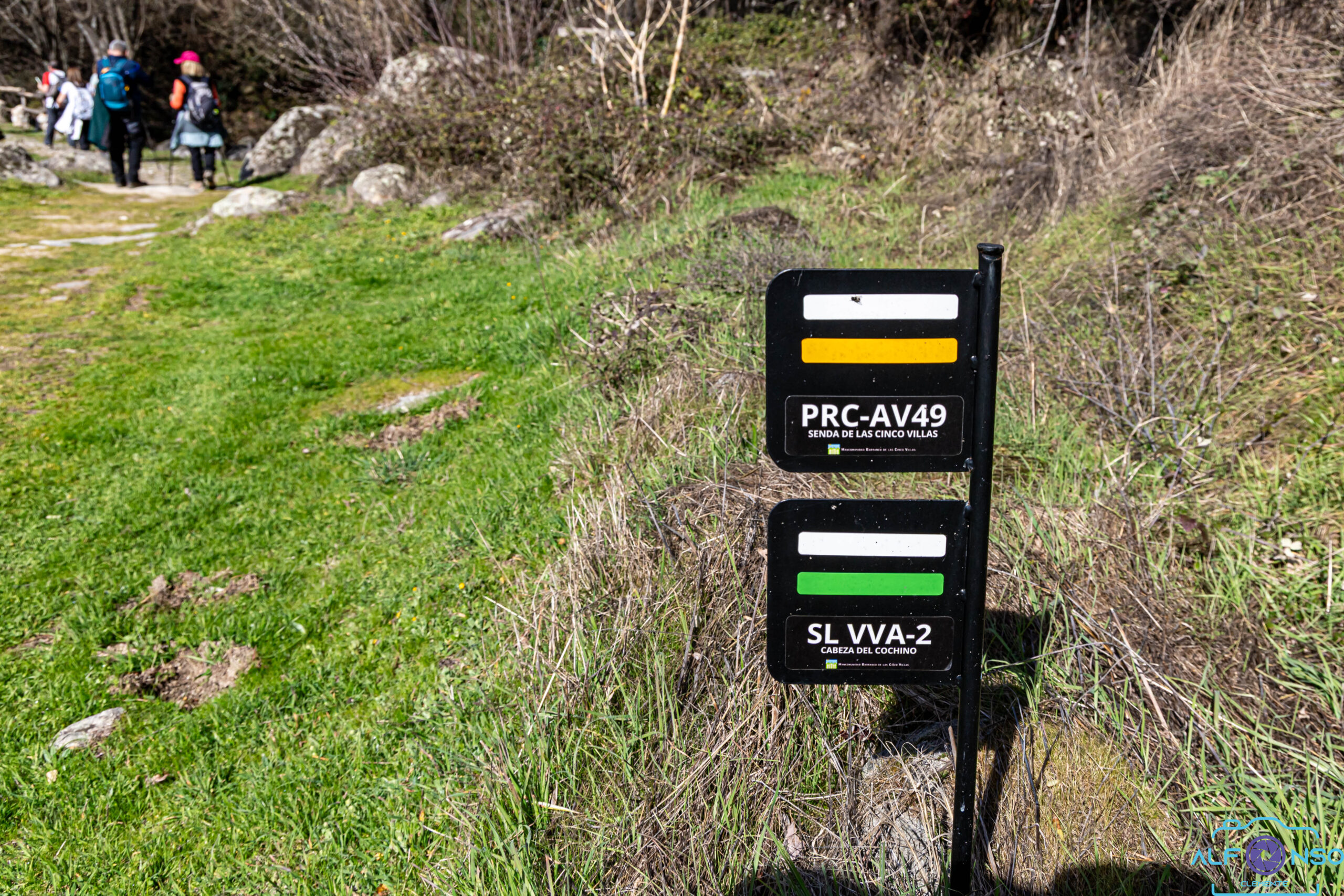 Todo el recorrido está bien señalizado, balizas de madera con placa identificativa de pequeño sendero circular, PRC-AV 49 y marcas de pintura de pequeño recorrido.