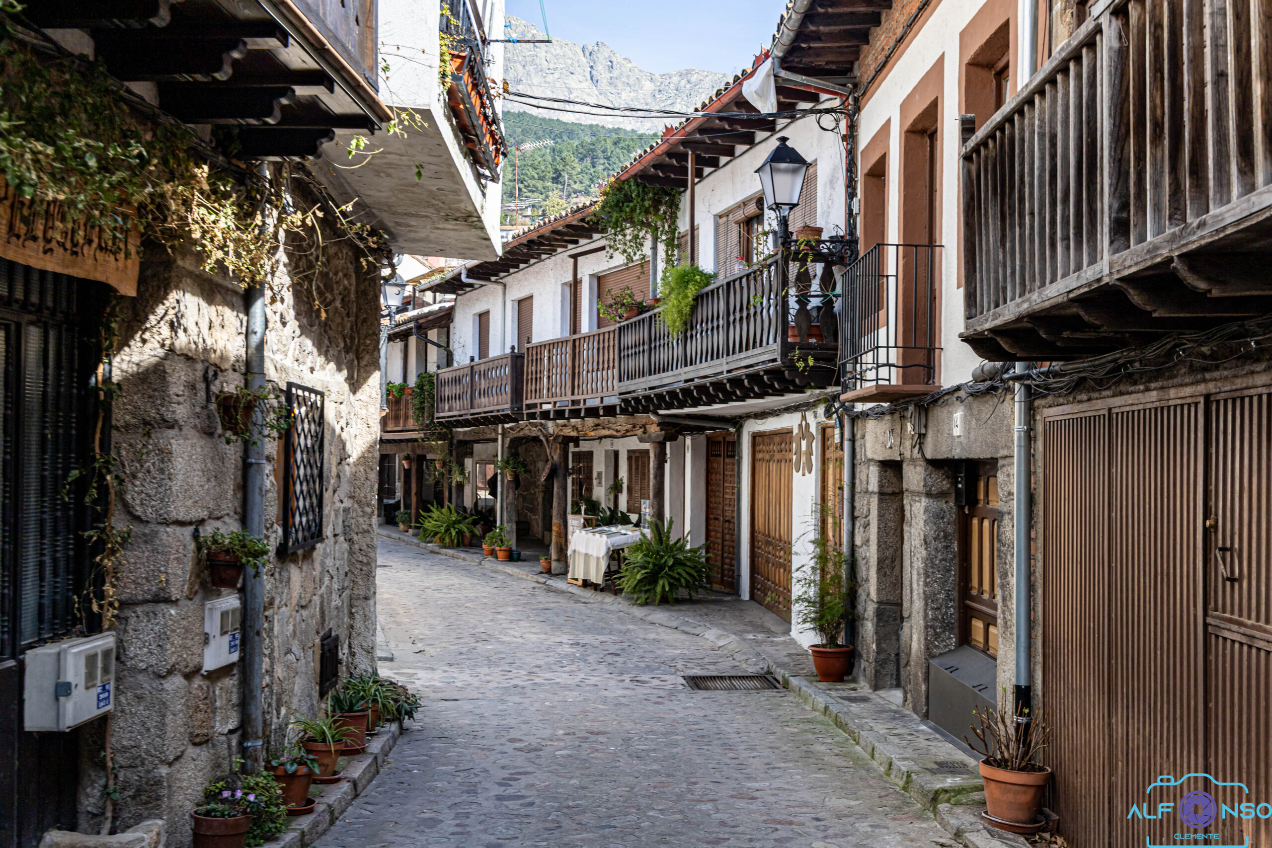 Probablemente el pueblo más pintoresco del conjunto. Calles empedradas, balconadas de madera llenas de flores y un ambiente auténticamente serrano.
