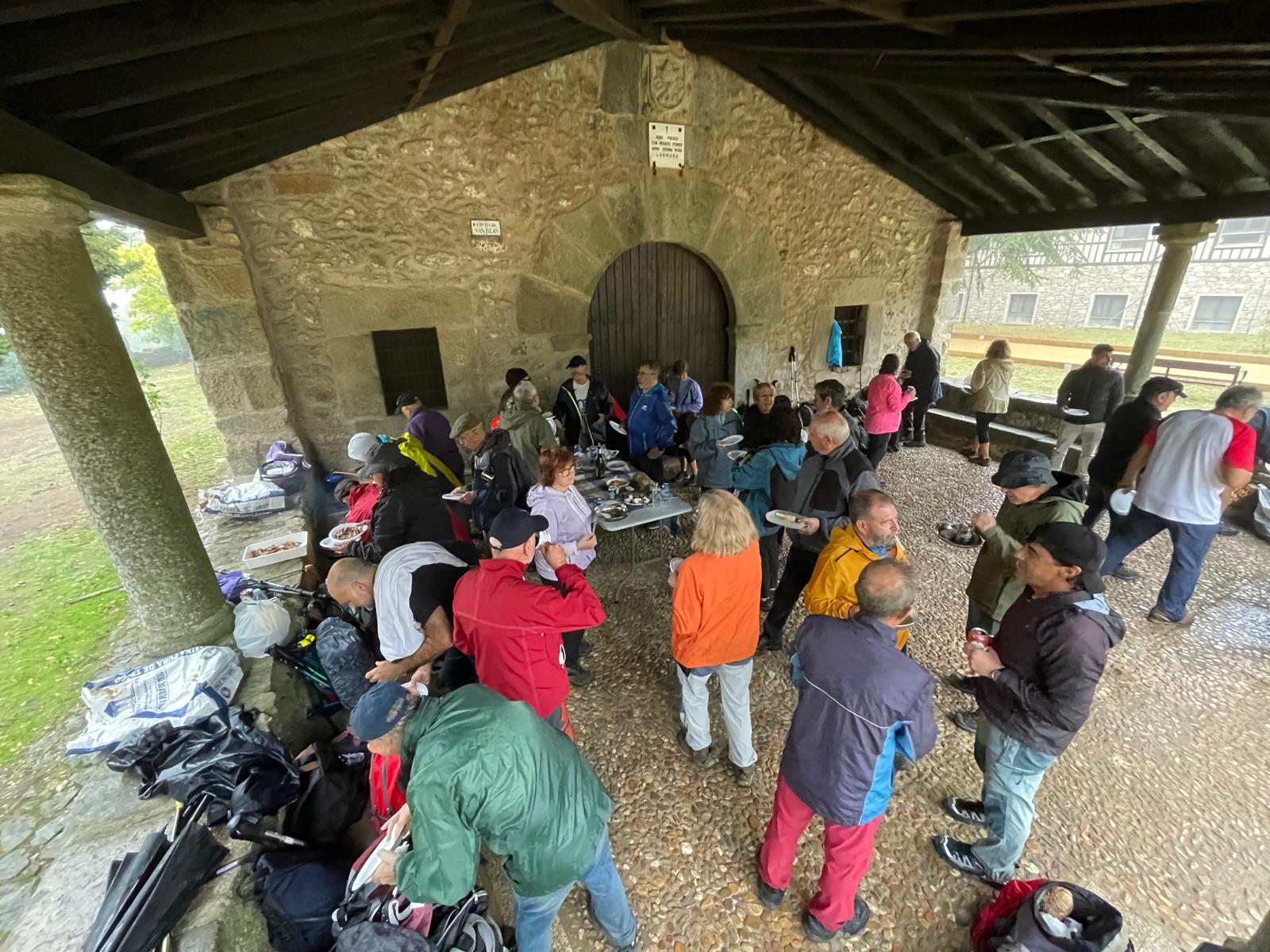 Se asciende por un sendero empedrado entre cultivos y pinos hasta llegar a la pista forestal que tomamos hacia la izquierda y nos lleva hasta las ruinas de un antiguo molino que únicamente mantiene la curiosa tobera de anillos de piedra característicos en este entorno enclavado en una preciosa aliseda.